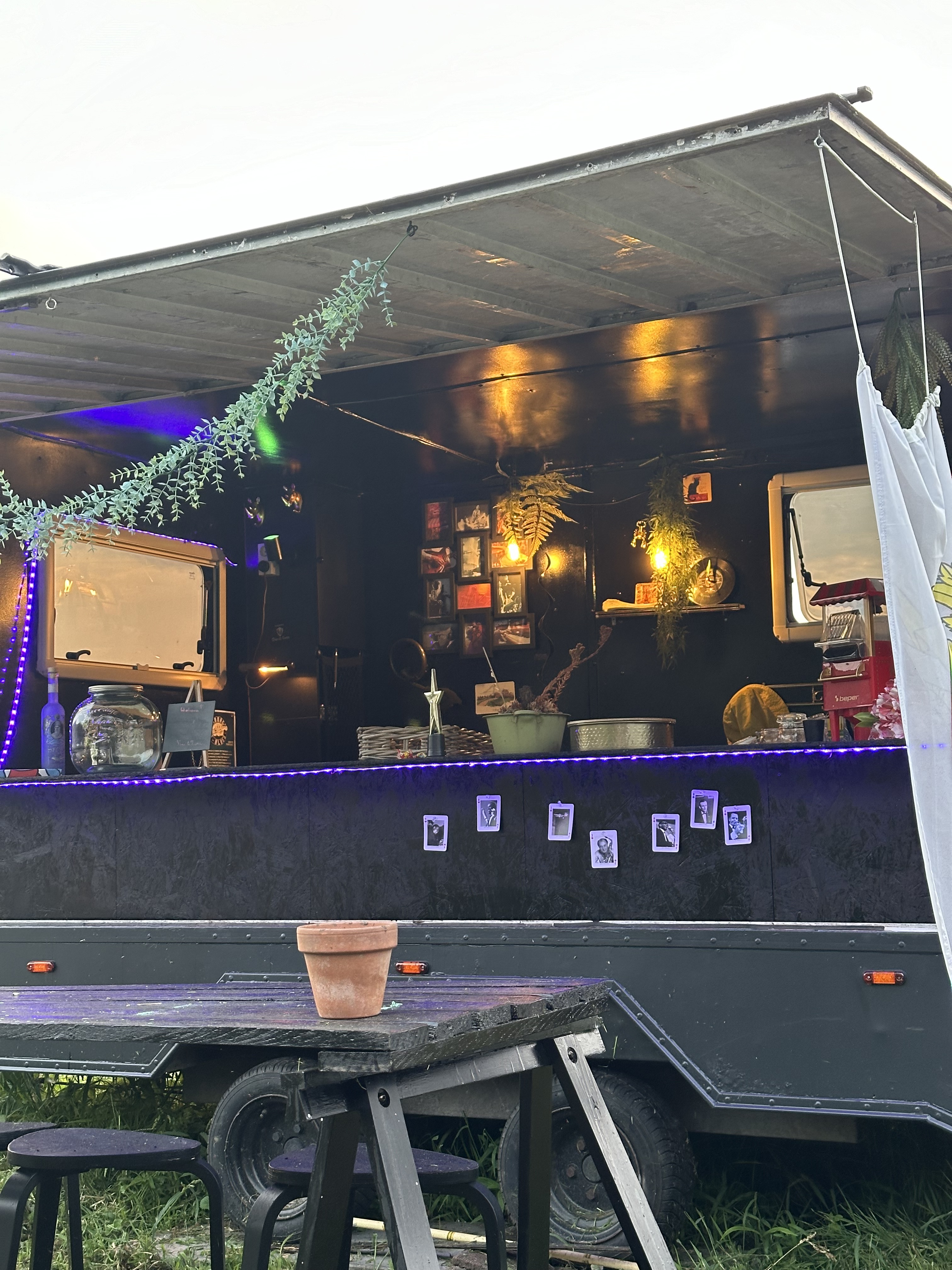 Centraal op ons erf, naast de Hooiberg en de tuin van de Zwarte Schuur, vind je een geheim juweeltje: Jazzclub The Flush. Dit is niet zomaar een jazzclub; het is de kleinste jazzclub van Culemborg en misschien zelfs ter wereld! Wanneer je deze unieke ervaring boekt, stap je in een wereld vol sfeer en gezelligheid die je rechtstreeks naar New Orleans voert. De intieme setting biedt comfortabele lounge banken waar je kunt ontspannen, terwijl de klanken van jazzmuziek – of een ander genre naar keuze – je omringen. Standaard met koffie, thee, monitor met Apple tv en Sonos Roam, koelkastje en als Extra eventueel een biertap, machientjes voor suikerspin en popcorn, friteuse, horeca apparatuur voor wafels en hotdogs. Op aanvraag ook loungemeubilair. Prijs: standaard 150 euro per dag, 200 euro per dag inclusief extra’s. Afleveren voor 50 euro.